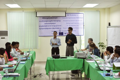 On the 25th, the focus was on IBJ’s internal policies, and on introducing IBJ’s Child Protection Policy. In the first part, Ms. Charlène Buisson, Program Officer, discussed the Human Resource policies and latest performance assessments with the staff . In the second one, Jeanne Salome, Program Officer, started a module on IBJ’s Child Protection Policy, raising the importance of an efficient response from IBJ staff to any kind of harm or abuse children might face while developing our work. Examples, such as securing disclosure of information in juvenile cases, were raised by the staff. Mr. Chhay Ros, representative of AusAid advocated towards the expansion of the Child Protection network with several organizations in Cambodia, which IBJ is glad to be a part of.In the second half of the morning, Mr. Ouk Vandeth, IBJ Fellow and Country Manager in Cambodia, and Mr. Brian Rohan, Special Projects Director, started a debate on IBJ’s mission and advocacy efforts for universal access to legal aid in Cambodia.